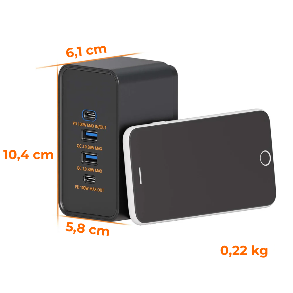 - 1 port USB-C PD 100 W bidirectionnel (entrante/sortante)