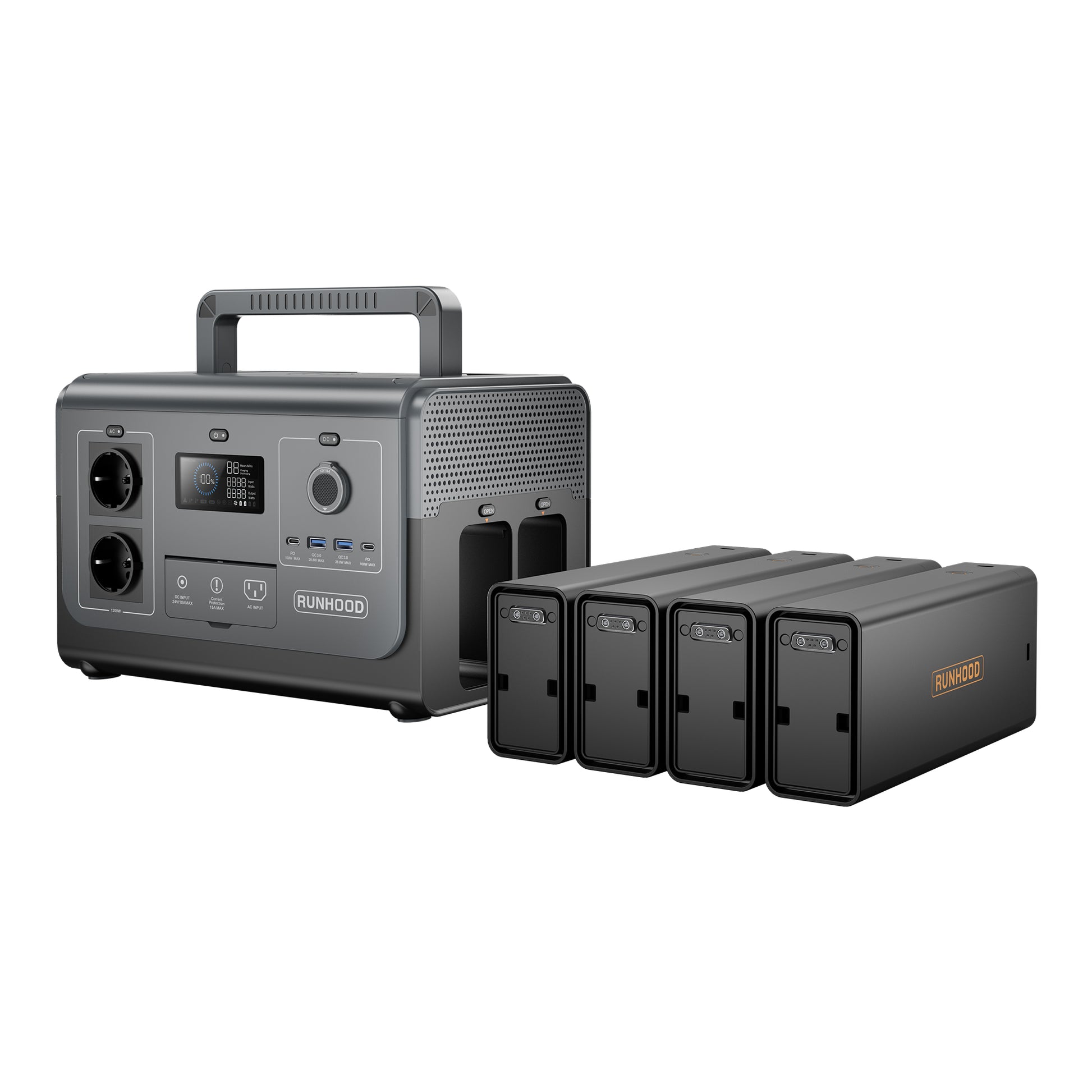 | Sorties | 3× AC 110 V 60 Hz (1 200 W continu), 4× USB (2× PD 100 W, 2× QC 28 W) |