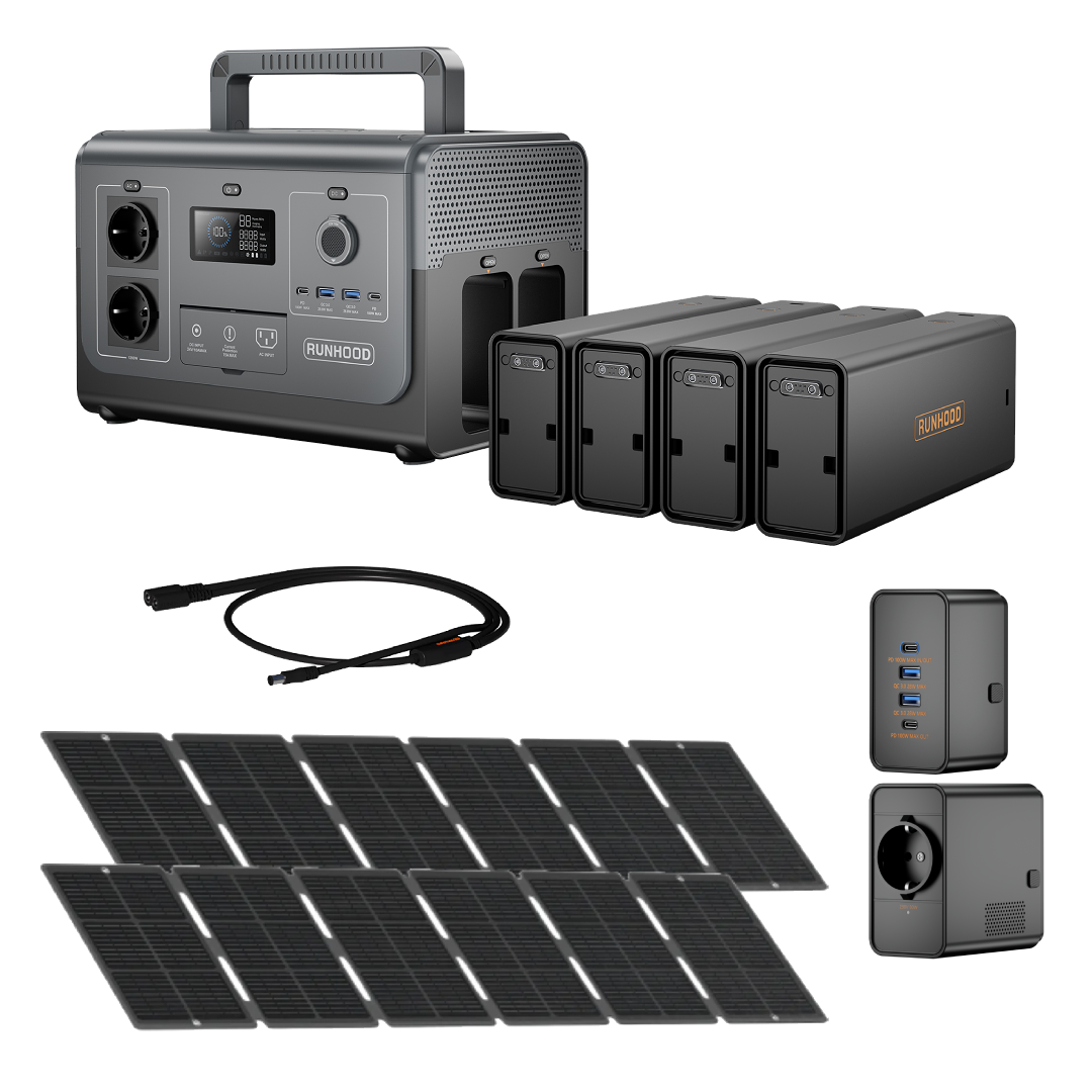 | Batteries EB324 (×4) | 324 Wh chacune (1 296 Wh total), 256 W max., 1 000+ cycles à 80 % DOD |